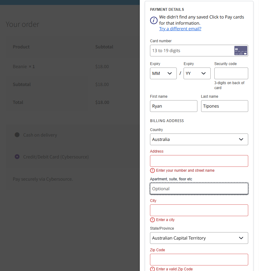 Online demo: https://cybersource.ryanplugins.net/unified-checkout/